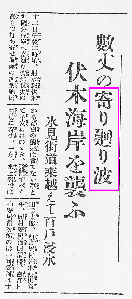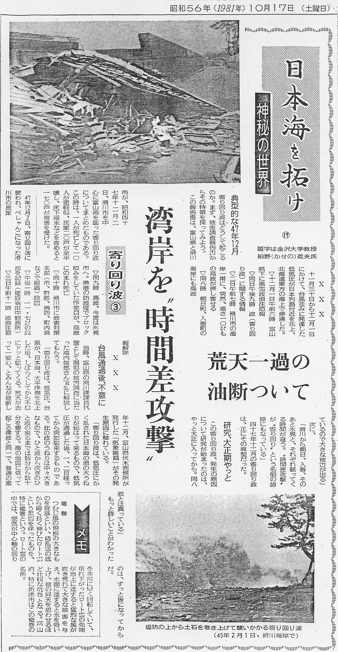 「沿岸に寄りながら回り高くなる波」→「寄廻り高波」