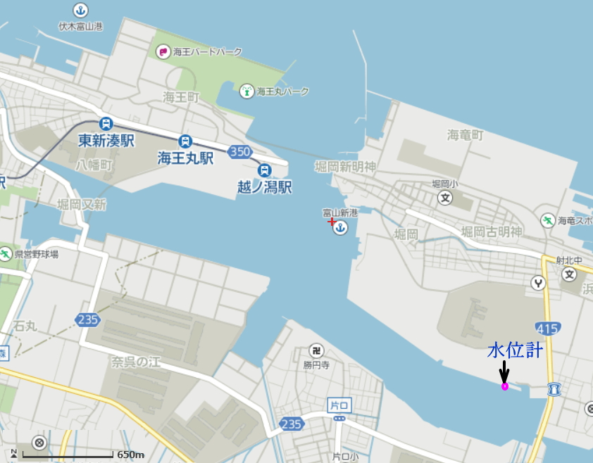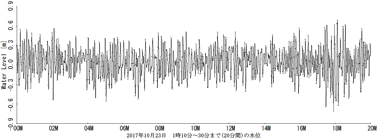 ☆問題 (1)2017年10月23日01時10分00秒〜19分59秒までの10分間の水位データ を用いて、有義波高と有義周期を求めよ。 (2)2017年10月23日01時10分00秒〜29分59秒までの20分間の水位データ を用いて、有義波高と有義周期を求めよ。 ☆水位データ ☆水位データの図 ☆水位計位置 |
