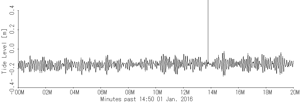 図2 地震発生前後の富山新港内(E点)の水位(2011年 3月11日) (気圧による水位変動を除去)<東北地方太平洋沖地震> |