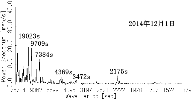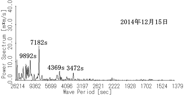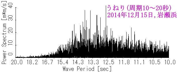 図5 うねり性波浪のスペクトル(岩瀬浜沖)[2014年12月] |