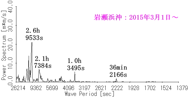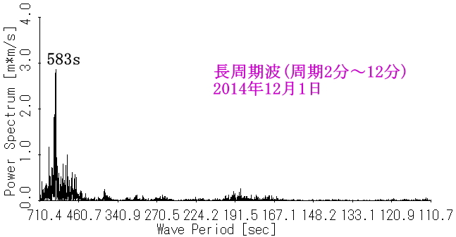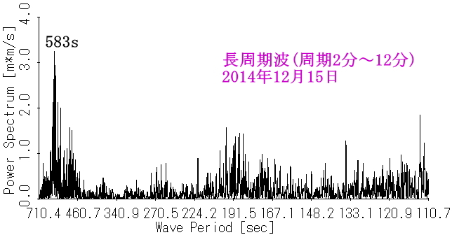 図7 水位(145.6時間分)のスペクトル(岩瀬浜沖)[2014年12月] |