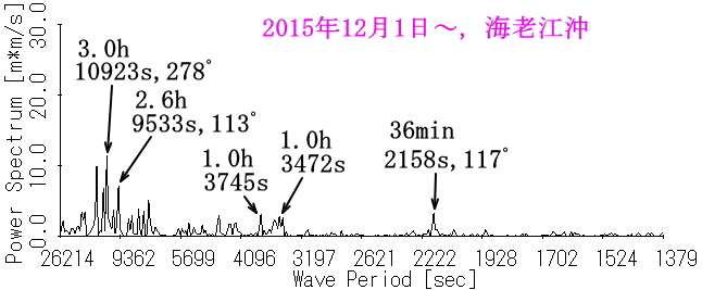 図11 海老江沖の水位スペクトル (2017年12月26日0時10分〜約3日間の水位を解析) |
