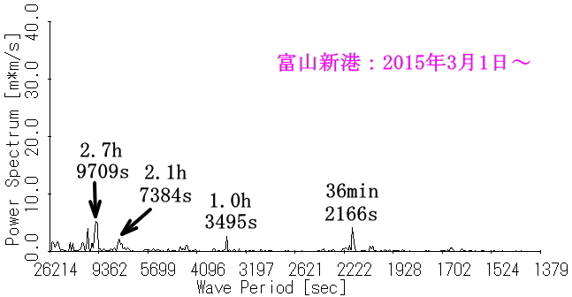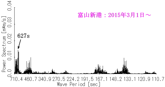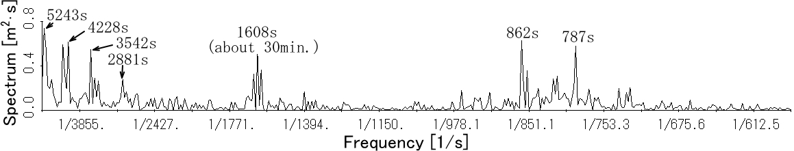 図7 富山新港・岩瀬浜沖の水位(145.6時間分)のスペクトル |