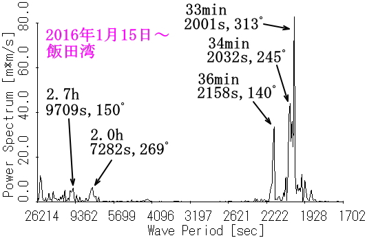 図8 水位(145.6時間分)のスペクトル(飯田湾) |