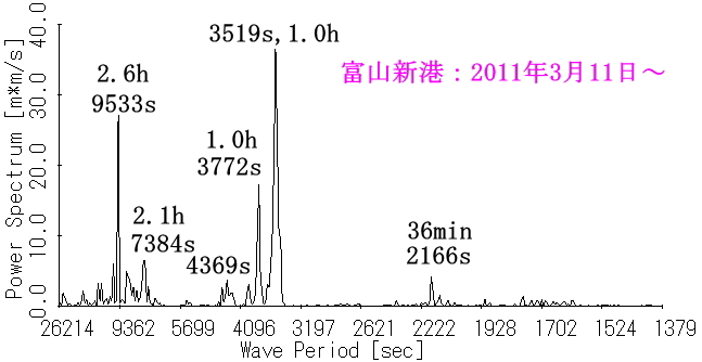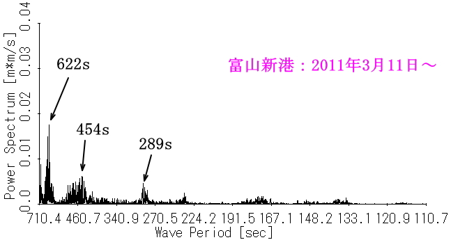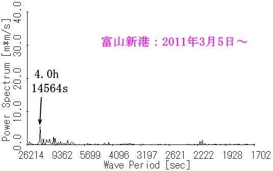 図4 地震発生後の富山新港内水位(145.6時間分)のスペクトル |