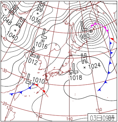 図8 天気図(2015年3月3日〜5日) <気象庁> |